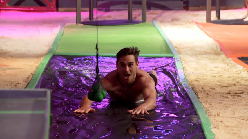 At the challenge in the Big Brother basement the “Forgotten Four” spun like corkscrews to release a sack of balls down a slip’n’slide, with the first person to roll their balls in a hole winning. After a tight race between Luke and Annelise, Luke emerged victorious.